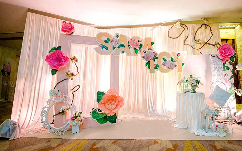 一站式四大金刚+仿真花+立体设计+布幔全场布置