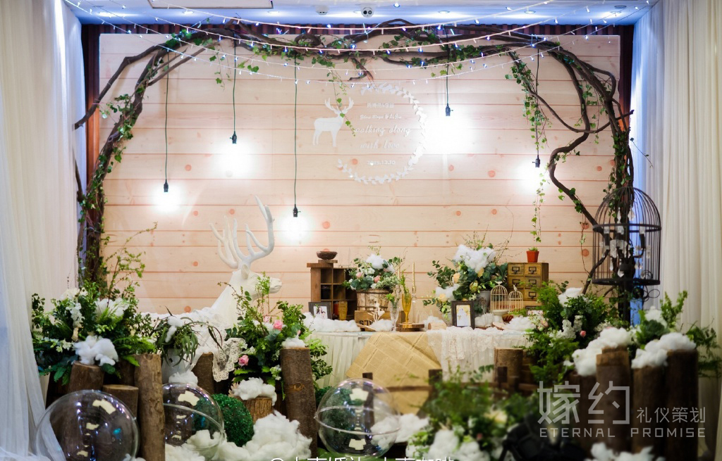 嫁约简介:嫁约礼仪策划是一家以“描绘您所想,给予您感动”为理念的高端婚礼定制策划公司,包含婚礼策划,化妆,司仪,摄影摄像,年会等服务。一场婚礼是否有其灵魂,是我们界定婚礼好坏的标准。触动心灵,清新脱俗。新婚新理念:不要把婚礼当成商品,要把婚礼当成作品;婚礼是精品,不是奢侈品;告别婚礼操劳,享受婚礼快乐;我们不是幸福的搬运工,我们是幸福的缔造者。嫁约给您:真心、服务、细节、性价比、属于您的完美婚礼。 亲爱的你看见了吗?远处那颗绿色的植物,在大自然中无畏的生长着。可当你走进我的生命,就像自然女神降落在我的全部。亲爱的,我要用来自森林的力量呵护你,你感受到了吗?若隐若现如同守护精灵,我将用我的一生去守护你~