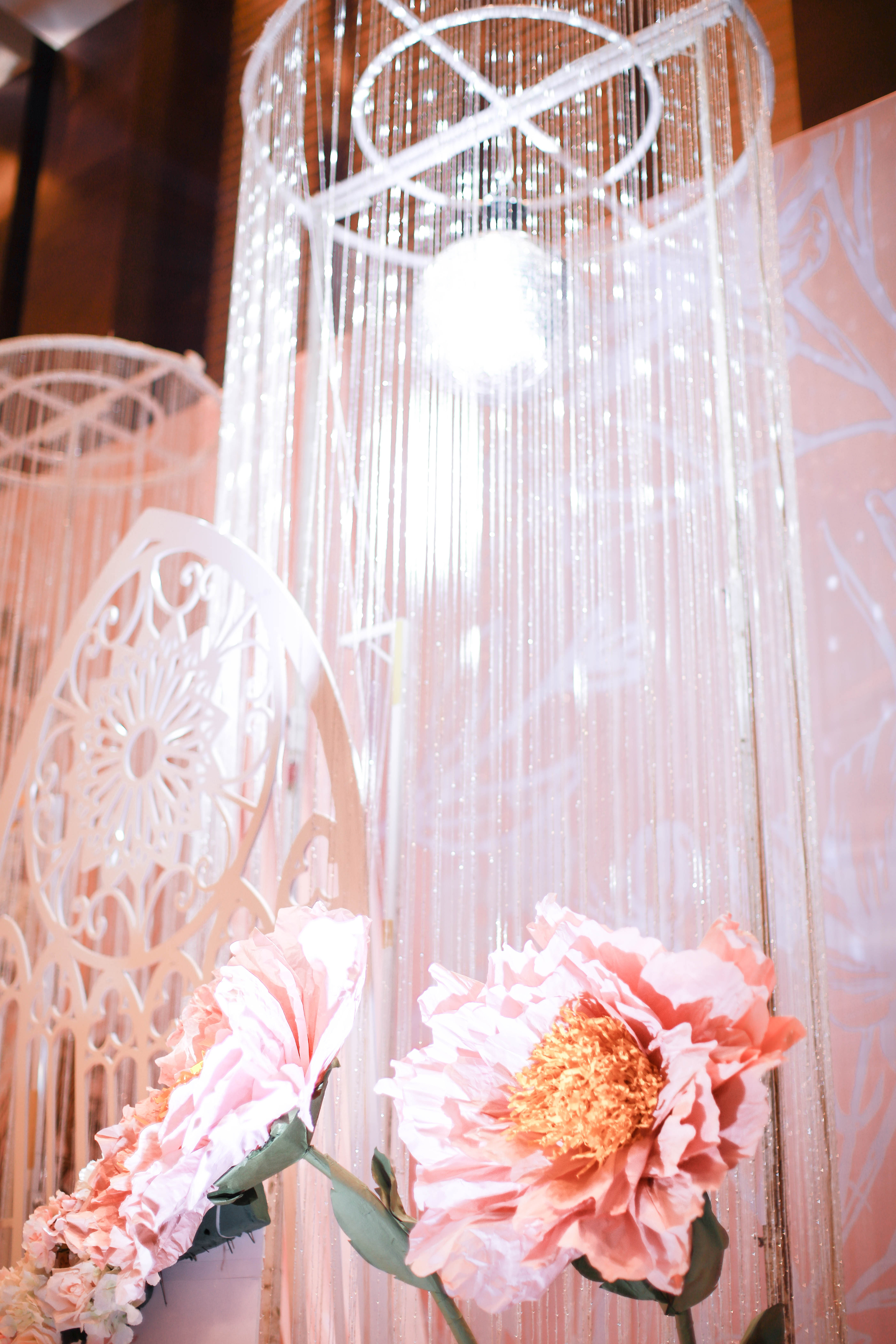 本套餐适合室内婚礼场地,粉色调的设计给人清新淡雅,温馨又温暖的感觉,具有高贵、辉煌的气息。也代表着甜美、温柔和纯真,像女孩的美梦一样,会带给人美好的回忆。象征爱情的莫比乌斯环,如命运的纽带流动其中,搭配北欧风花艺装饰,让整场婚礼充满生机。