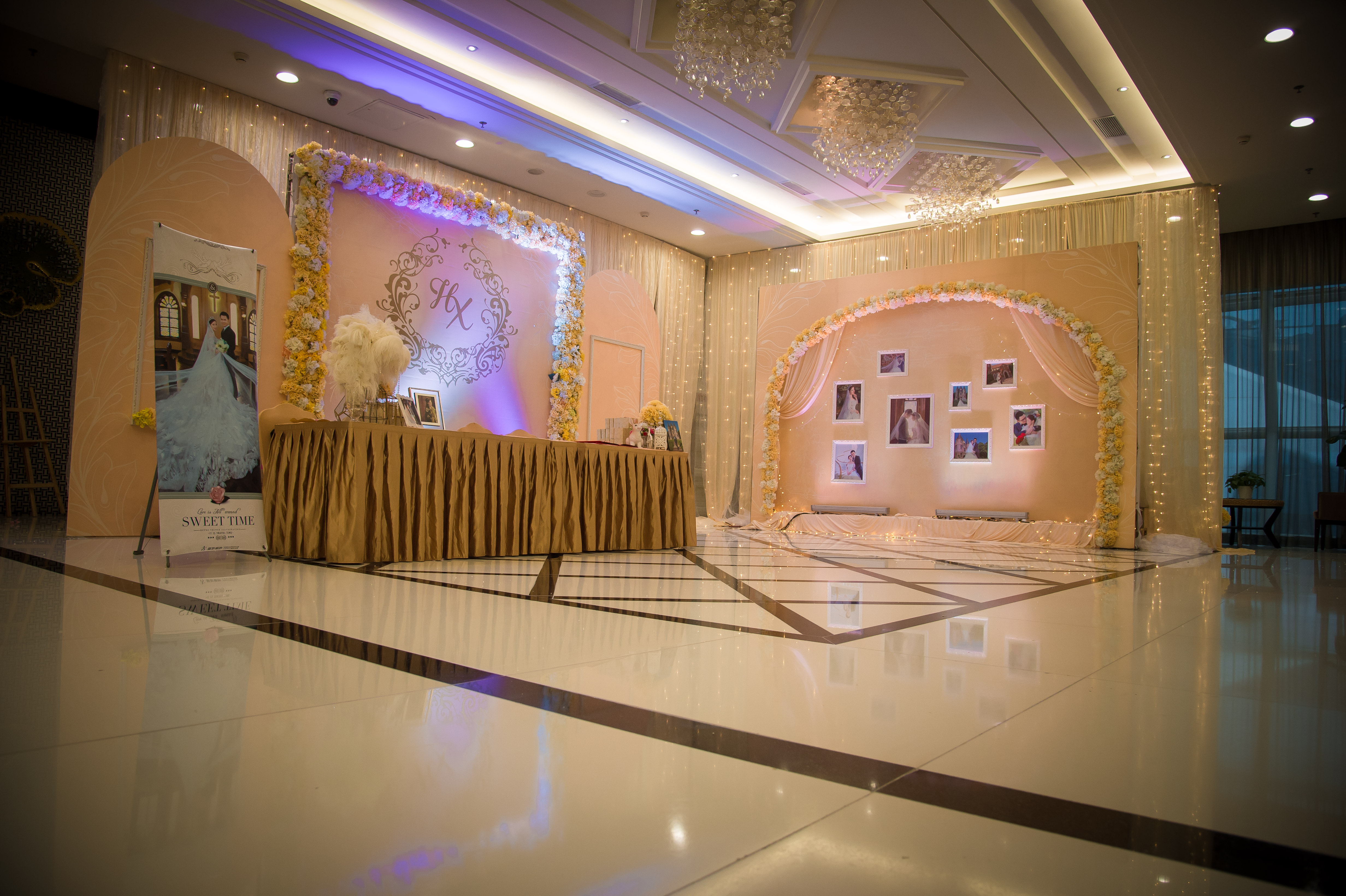 本套餐适合酒店室内西式婚礼布置,设计以简约的欧式风格,简单明亮的布置,适合当下现代年轻人。